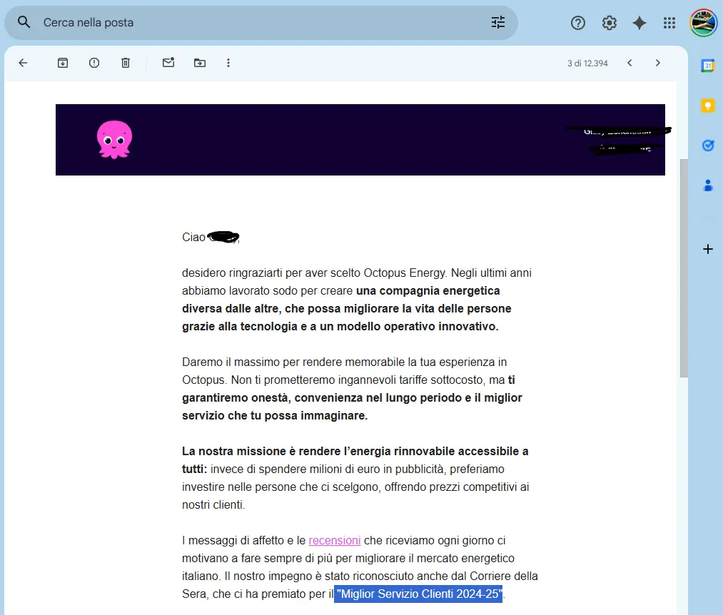 Tutto è partito da una comunicazione di Octopus Energy che mi chiedeva di decidere come proseguire la fornitura, a seguito della scadenza di un’offerta precedente e dei cambiamenti del mercato libero. Una situazione normalissima, che però genera sempre le stesse domande: